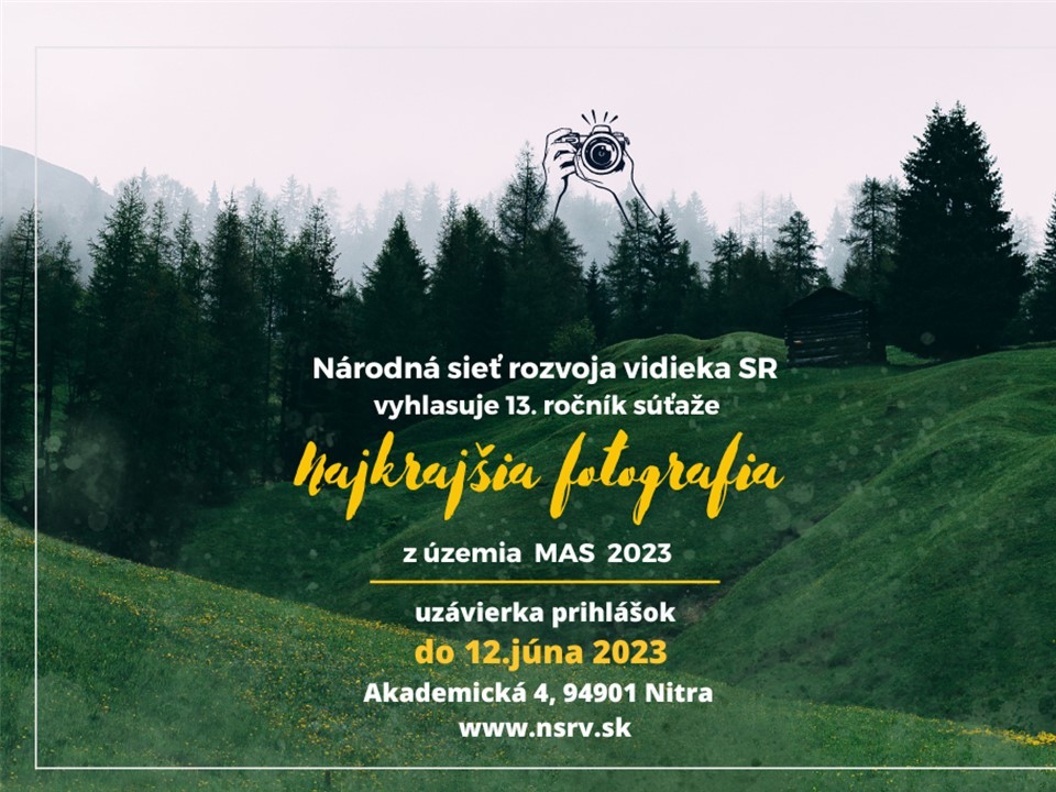 Národná sieť rozvoja vidieka SR pozýva miestne akčné skupiny zapojiť sa do 13. ročníka súťaže „Najkrajšia fotografia z územia MAS 2023“. Informácie k súťaži a prihlášku nájdete TU.