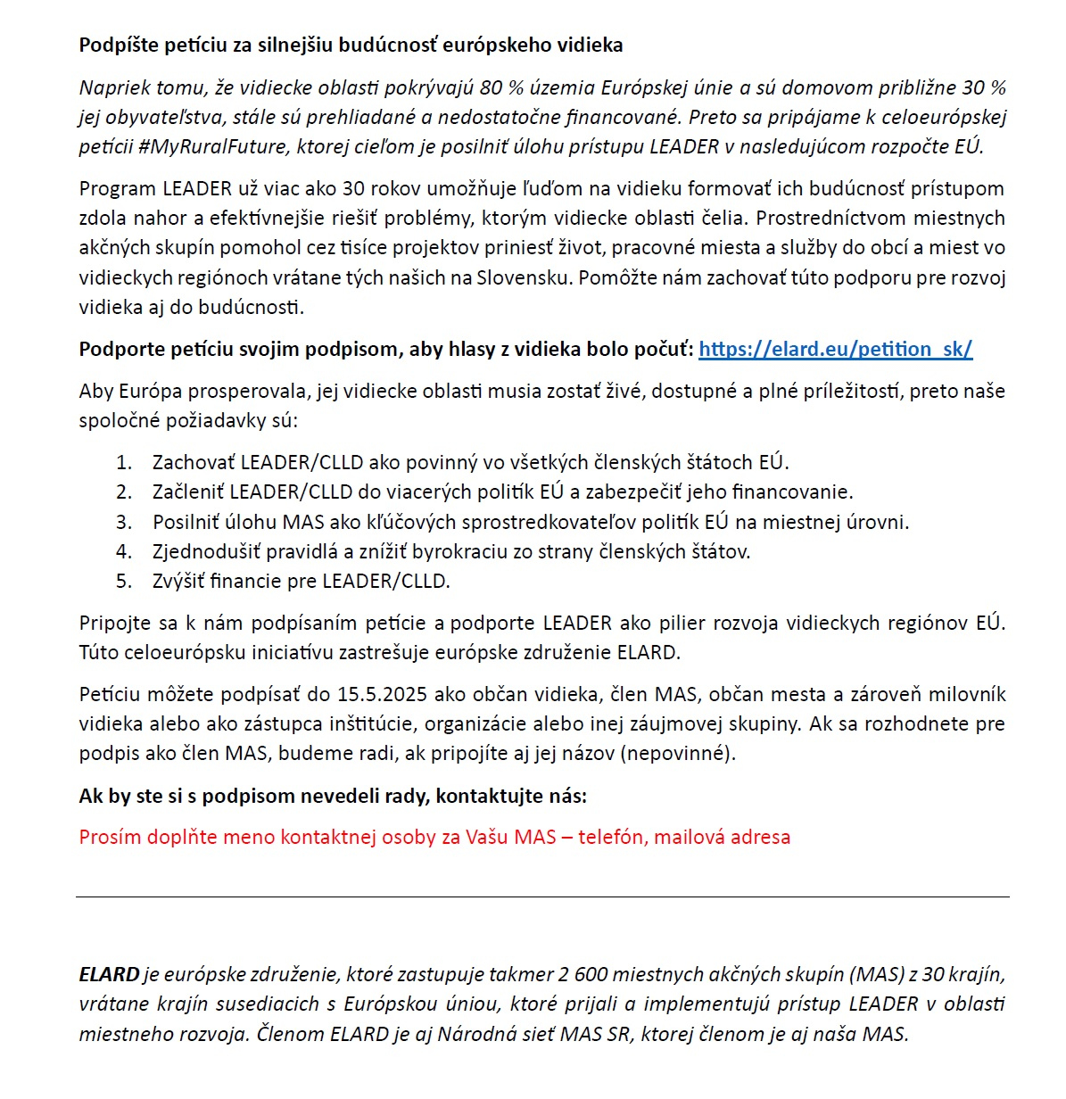 Podporte petíciu svojim podpisom, aby hlasy z vidieka bolo počuť: https://elard.eu/petition_sk/